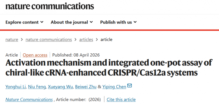 近日,我校食品学院朱蓓薇院士团队陈翊平教授课题组在食源性致病菌快速检测方面的最新研究成果以“Activation Mechanism and Integrated One-Pot Assay of Chiral-like crRNA-Enhanced CRISPR/Cas12a Systems”为题在《Nature Communications》上发表。该研究明确了CRISPR/Cas12a体系中pre-crRNA成熟过程中释放的5′端重复片段的独特功能,构建了首个基于“延迟剪切”特性的一锅法检测方法,实现了海产品中多种食源性致病菌准确快速检测,为保障海洋食品安全提供有力工具。此项成果刊发于《Nature》子刊,彰显了我校在食品科学基础研究领域的显著实力与重要突破,也充分体现了学校科研创新能力持续跃升。