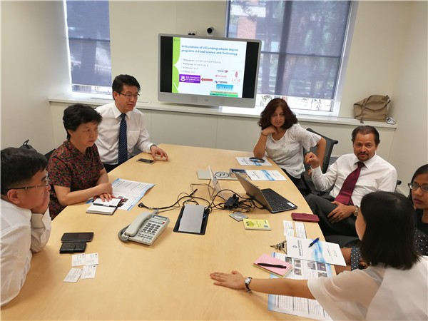 昆士兰大学是世界百强名校和著名高等科研学府,其食品工程与乳制品加工研究领域在世界上享有较高的影响力。朱蓓薇院士一行参观了昆士兰大学食品科学、食品品质控制实验室,并分别与农业与食品科学学院院长Neal Menzies 教授、食品科学系主任Patrick Testa 教授、食品学科负责人Bhesh Bhandari 教授及其团队成员进行了广泛的交流。双方就青年教师项目合作及学术交流、博士生联合培养、昆士兰大学课程引进等达成了共识。双方商定今年四月昆士兰大学安排两名教师到大连工业大学进行学术交流,七月为研究生和本科生开设《Nutrition and Health》课程。