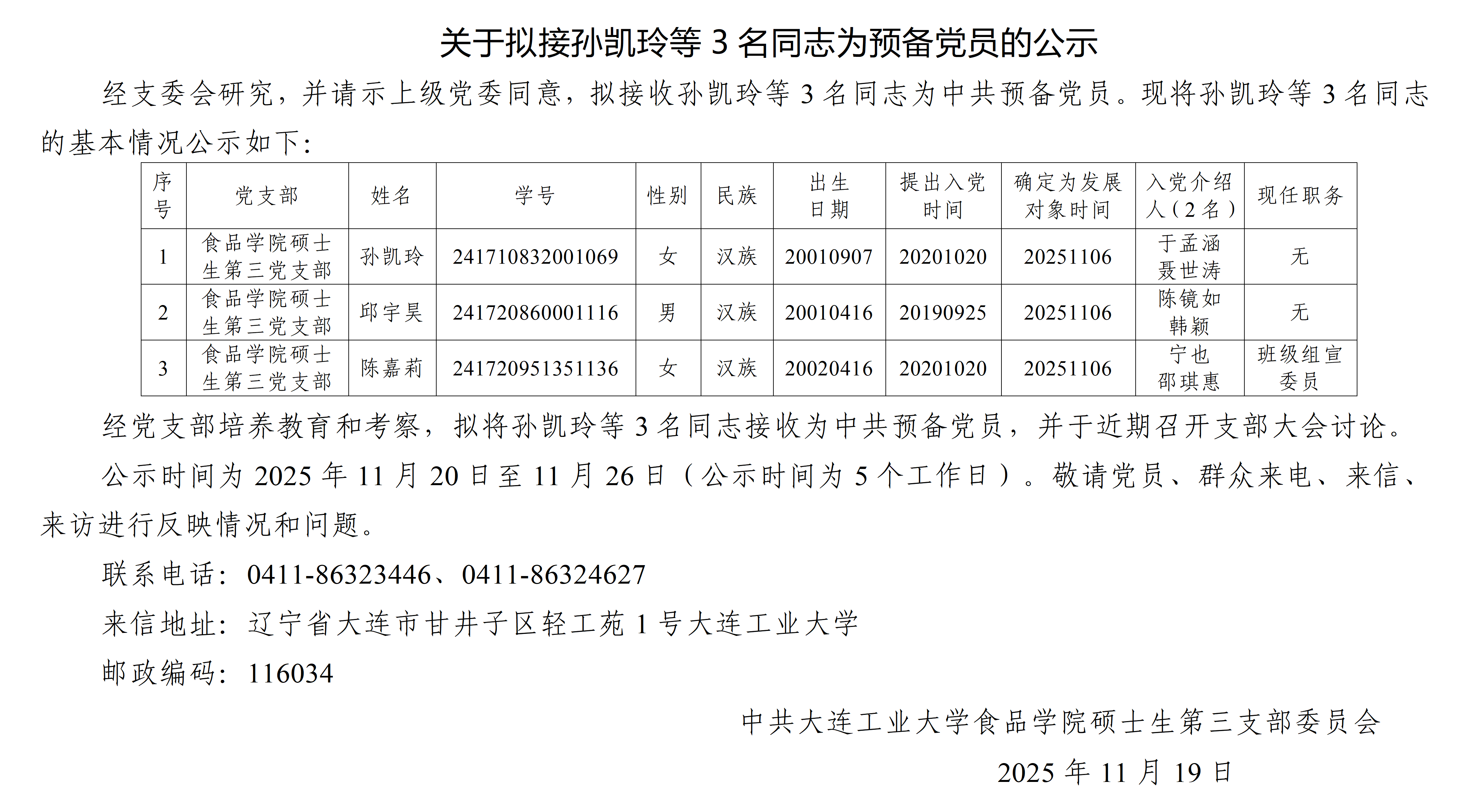 关于拟接孙凯玲等3名同志为预备党员的公示