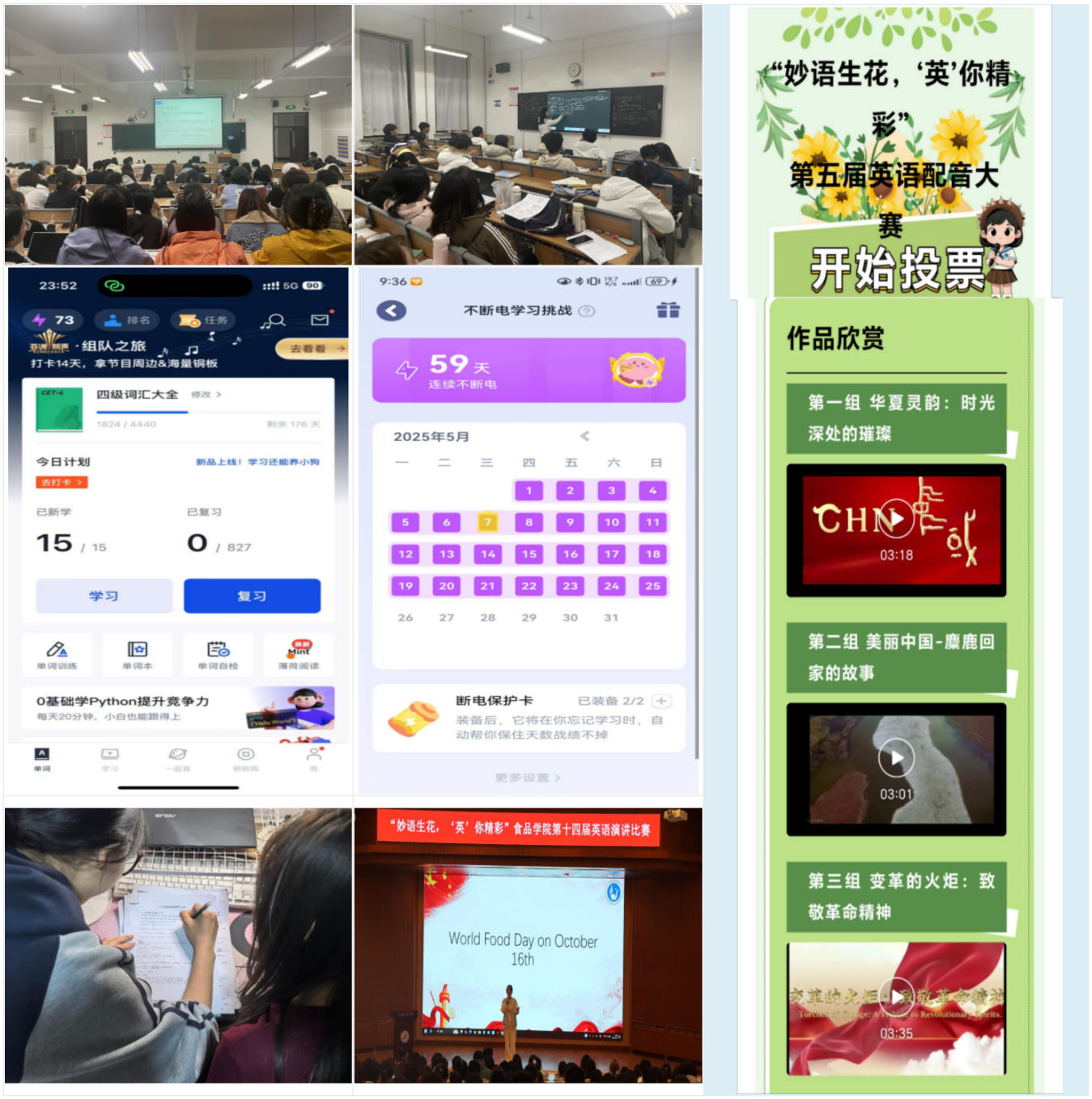 学院组织实施英语综合素养提升计划。发起第二届 “英语单词打卡”活动倡议,帮助学生养成记词习惯,夯实词汇基础;举办第五届 “英语演讲”比赛,聚焦爱国荣校与专业报国主题,在比拼中锤炼学生口语表达精度与逻辑思辨能力;组织第五届 “英语配音”大赛,通过精选经典影视、动漫等趣味素材,让学生在沉浸式演绎中提升英语听说反应,激发主动学习英语的内生动力。